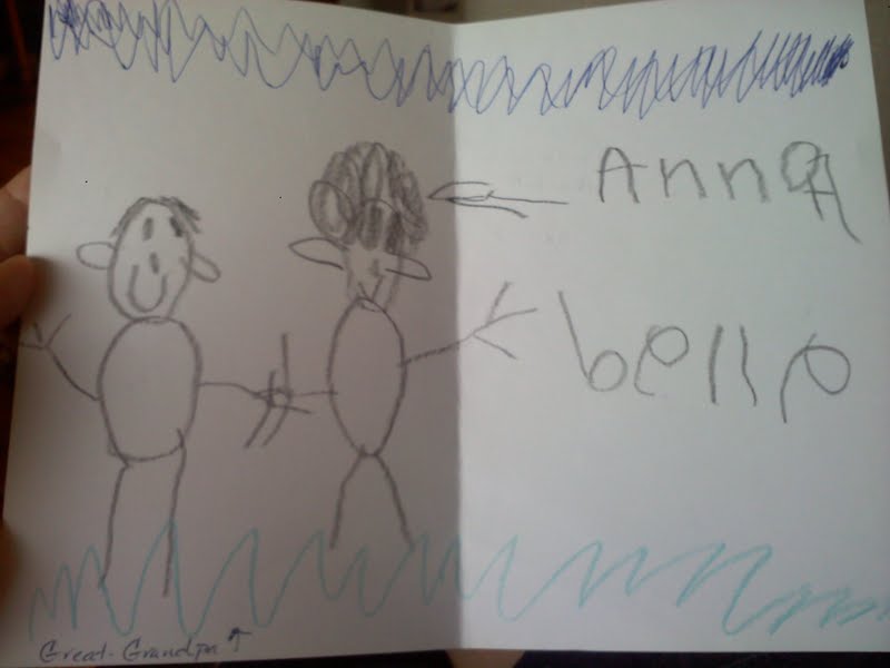 When my parents were going to visit my grandpa in the hospital one day they took my niece who is “4 but almost 5” up to visit as well. She had made a Get Well Card for him and on the inside she had drawn this picture: