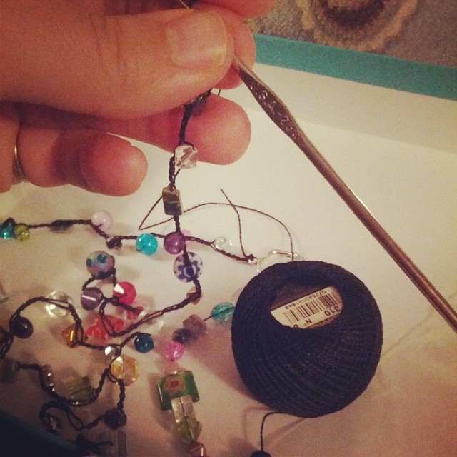 Having created a lot lately with my hands, first crocheting scarves and other presents for Christmas and now getting back to beading I am reminded how satisfying it is. To have a skill- as a result of a story… I remember learning from my grandmother and great aunt how to crochet, sitting for hours in the basement chaining away the length of the basement several times over.